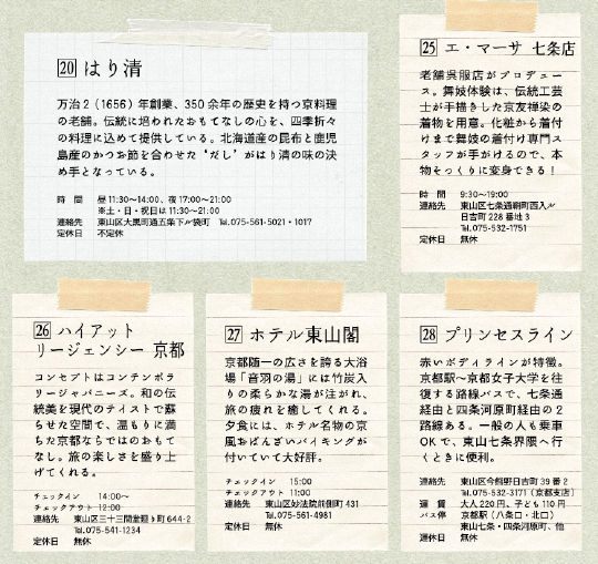 ▶20.はり清/25.エ・マーサ七条店/26.ハイアット・リージェンシー京都/27.ホテル東山閣/28.プリンセスライン