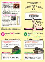 - ・「英語で指差し道案内 in 東山」と併せて御使用いただくと,地図を用いた 道案内やバス・電車の案内ができ,よりスムーズに道案内していただくことがで きます。