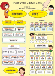 - ・観光案内によく使う単語や例文,地図を記載し,指差しするだけで簡単に道案内ができるように作りました。